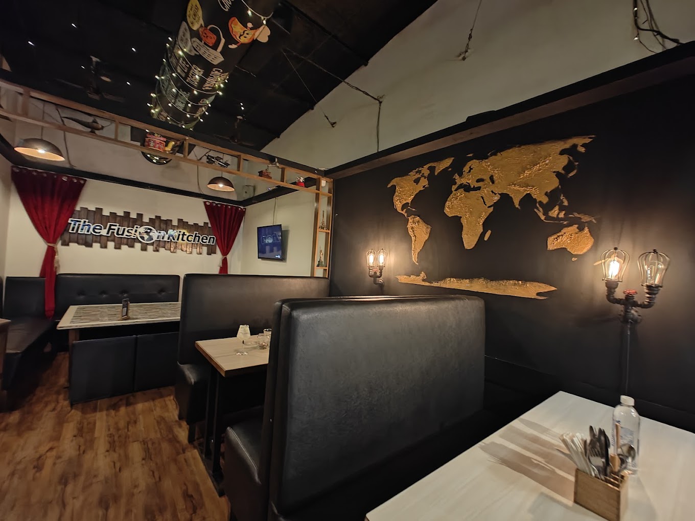 The ambience at The Fusion Kitchen is a blend of modern design and comfort. The seating is cozy and the lighting gives the place a warm, welcoming glow, making it perfect for both casual and semi-formal dining. The interiors have a stylish, contemporary look, with a mix of sleek furniture and artistic touches that make the space feel fresh and vibrant.